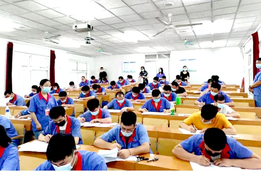 為確??荚図樌e行,公司人力資源部、大維分廠等單位扎實做好疫情防控、考核項目等各項準(zhǔn)備工作。2日上午8:30,理論考試在公司技校樓階梯教室正式開始。巢湖市人社局、財政局等3名領(lǐng)導(dǎo)現(xiàn)場督考。