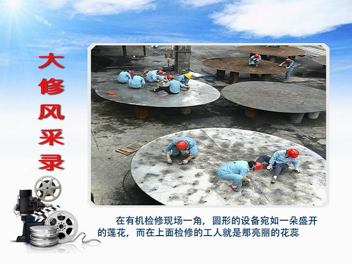 今年化工系統(tǒng)大修是歷年來(lái)檢修時(shí)間短的次,從7月1日正式進(jìn)入現(xiàn)場(chǎng),到7月10日恢復(fù)開車,僅僅10天時(shí)間,除常規(guī)檢修外,還要進(jìn)行技改項(xiàng)目對(duì)接。真可謂時(shí)間短、任務(wù)重、難度大、要求高,檢修其中還伴著連續(xù)陰雨天氣,更平添了檢修難度。面對(duì)大修任務(wù),全體參修人員克服重重難關(guān),不講條件,不計(jì)報(bào)酬,夜以繼日加班加點(diǎn),在規(guī)定的檢修時(shí)間里圓滿完成所有的檢修計(jì)劃,并實(shí)現(xiàn)次開車成功。親歷了各分廠檢修過(guò)程后,我們從中采擷了部分“檢修勇士”們繁忙的檢修身影,讓這些精彩的檢修瞬間帶著我們?nèi)ブ販?015年夏季大修風(fēng)采!