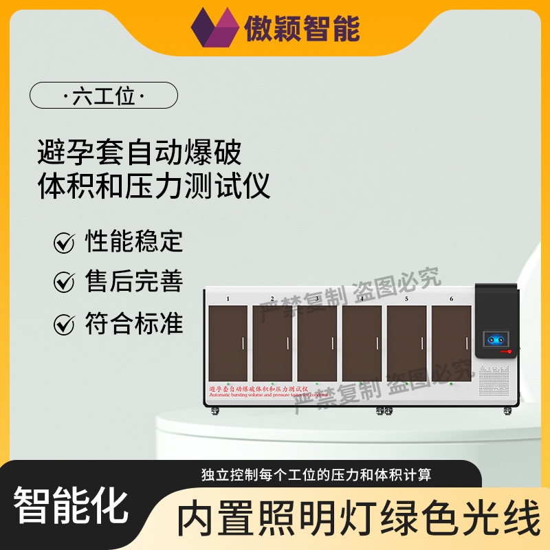 傲穎 六工位避孕套自動爆破體積和壓力測試儀 傲穎 六工位避孕套自動爆破體積和壓力測試儀